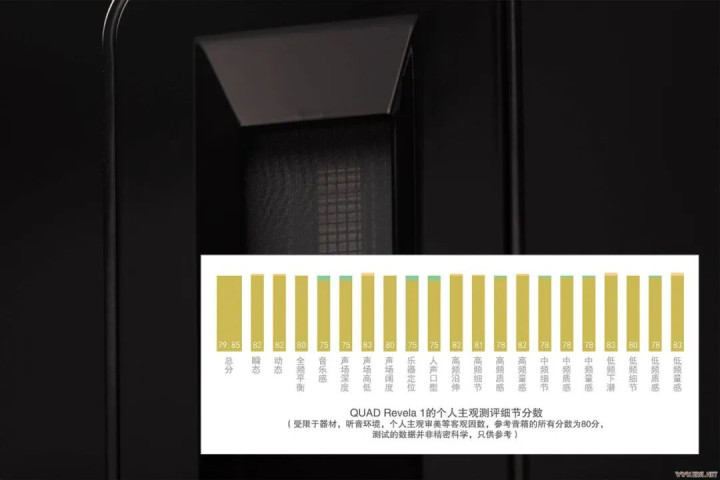 (参考音箱所有项目评分为80,受限于器材、听音环境、个人主观审美等客观因素,测试的数据不一定科学,只供参考)。