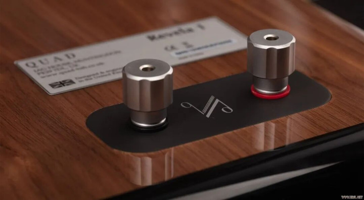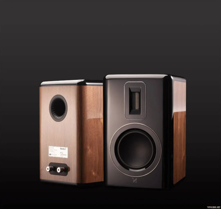 QUAD Revela 1 是厂家四年磨一剑研发的新一代书架式音箱,箱体内有支撑结构,分散消除不必要的振动;箱体采用大圆角边缘制作,箱体黑色拼胡桃木实木贴皮外罩的钢琴漆面经六层厚度的抛光处理,所有的固定、发声单元螺丝被隐藏得很好,有助声音立体成象;