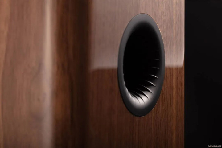 精准定位和尺寸调校的倒相孔在箱体的背面,倒相孔内壁肋条的设计可以消除气流快速通过时气流共振产生的杂音;