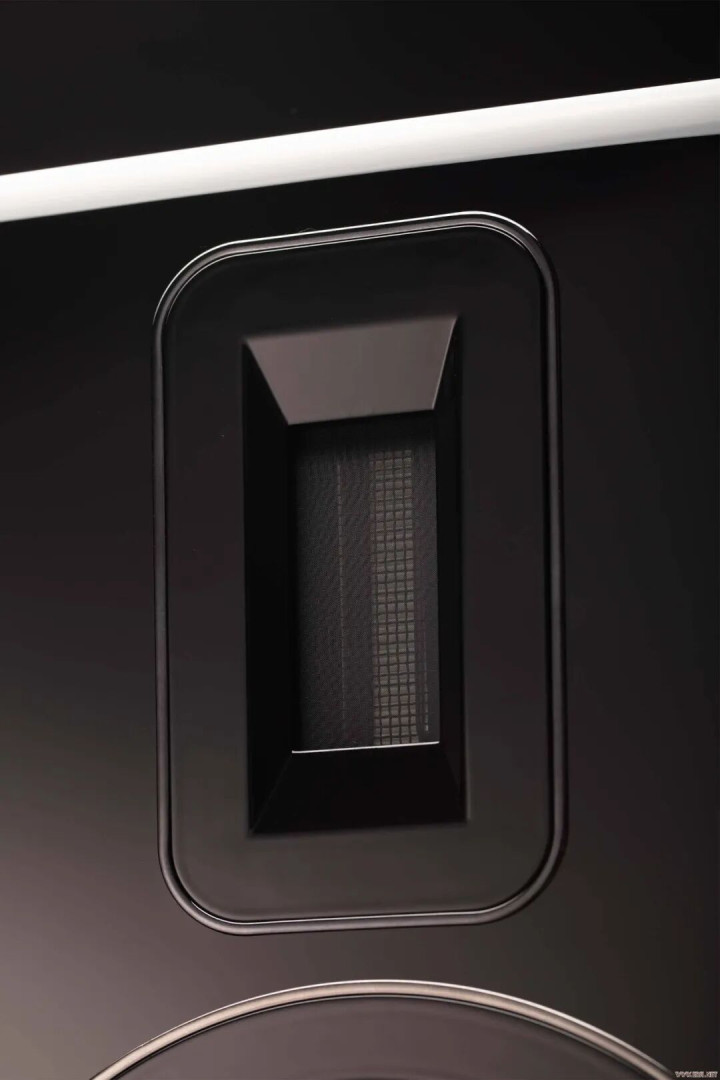 高音驱动单元采用名为 QUAD True Ribbon™的带式高音单元,振膜尺寸27×60mm ,高频延伸达 24kHz;带式高音工作原理是将超薄振膜带置于高强度磁场中,音频信号流经带状振膜驱动发声。振膜全域由音频信号直接驱动,不会出现球顶单元或其他平面单元常见的分割振动与共振,振膜质量只有传统球顶单元的十分之一,振膜受力均匀,能精准的还原音乐 中细节与瞬态,